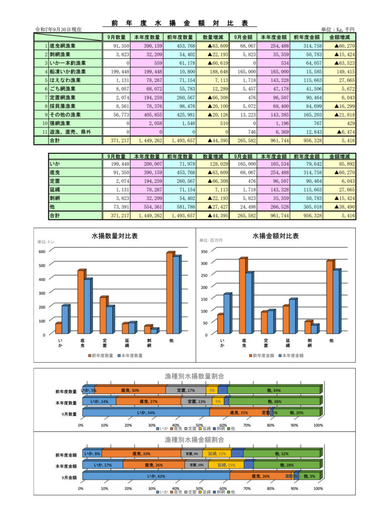 3. 「前年度水揚金額対比表」を9月分を公開しました。